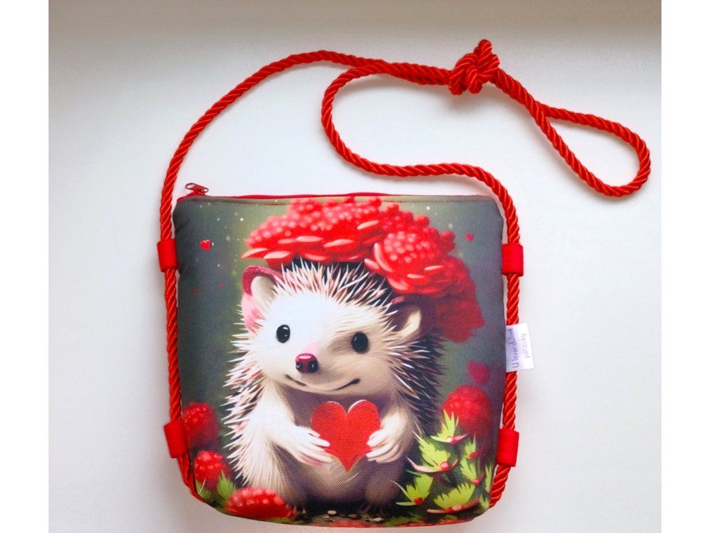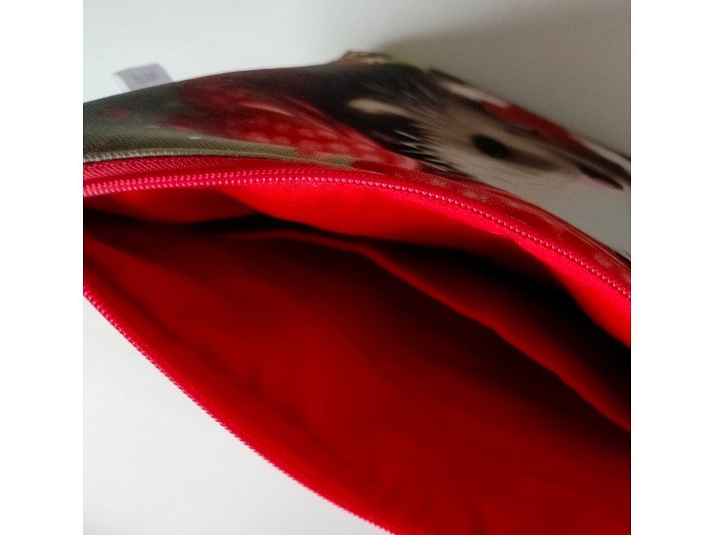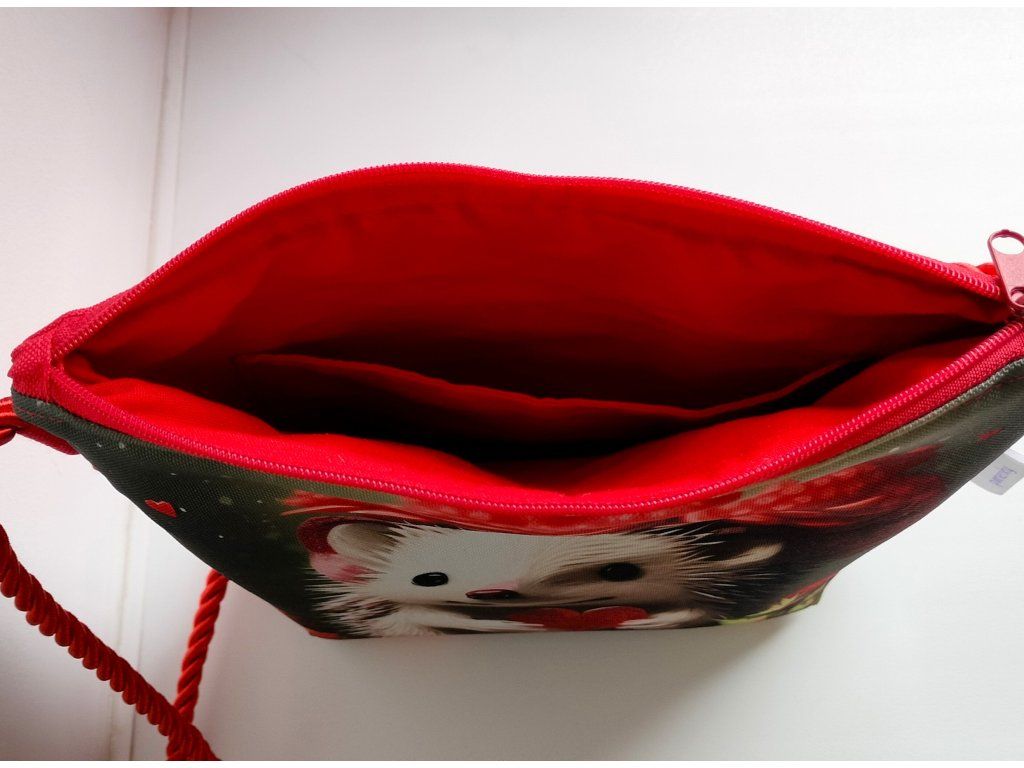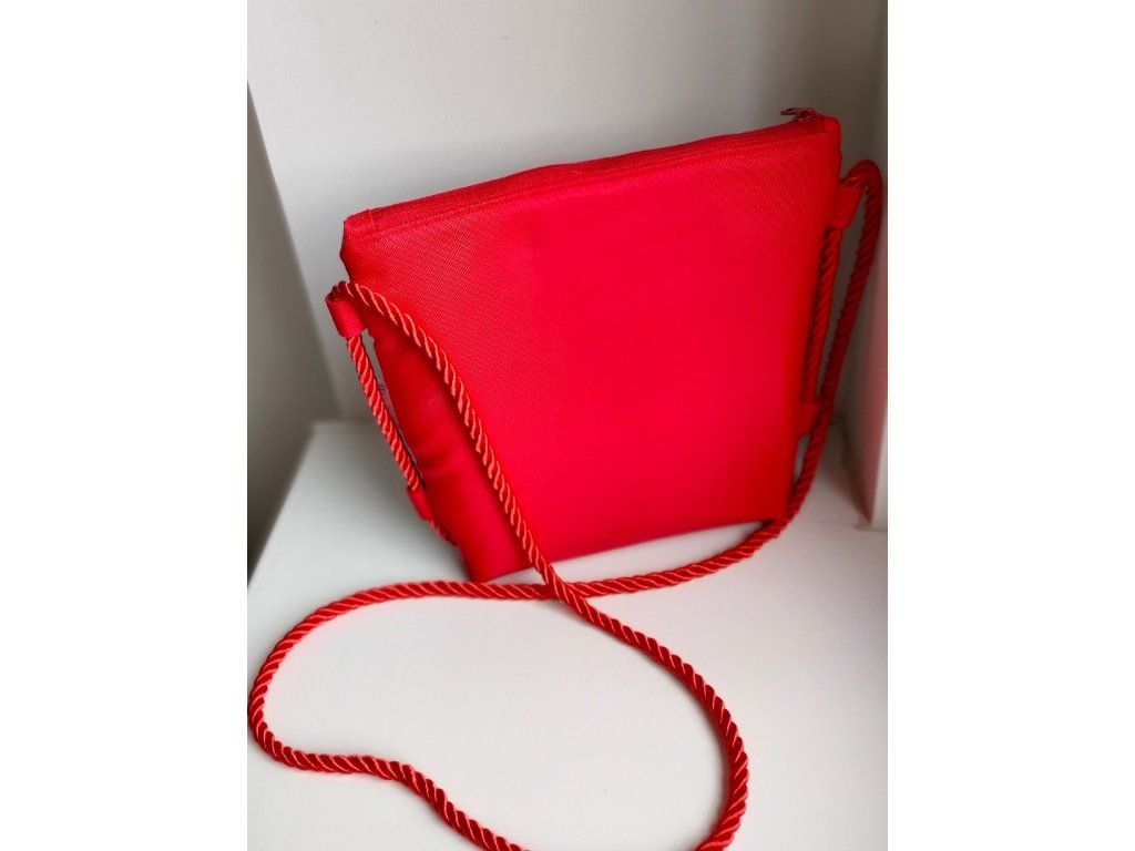 Vyztužená kabelka je ušitá z pevné kočárkoviny s kvalitním obrázkem, který je na přední straně, zadní strana jasně červená.