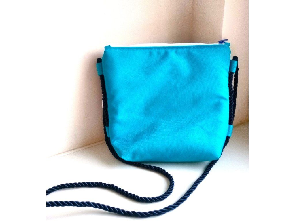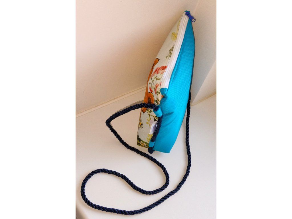 Vyztužená kabelka je ušitá z pevné kočárkoviny s kvalitním obrázkem, který je na přední straně. Zadní strana jasně modrá. .