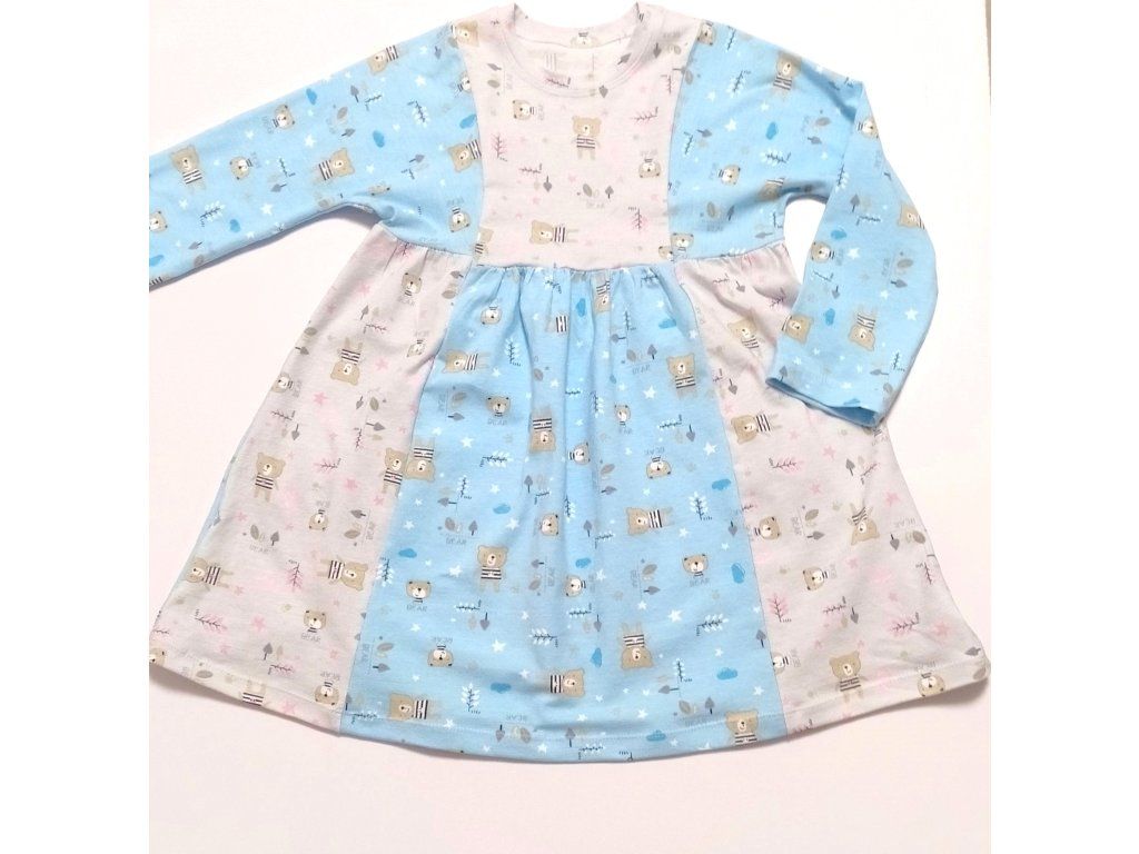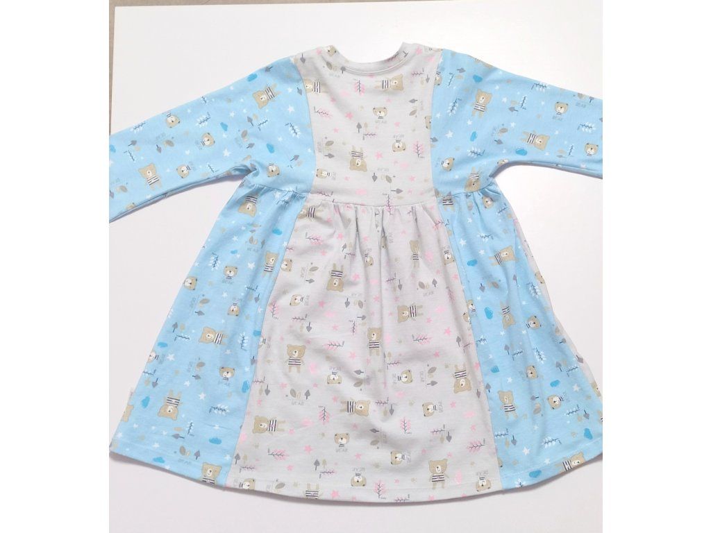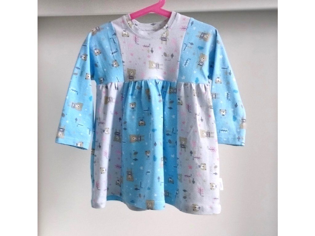 Dívčí šaty jsou ušity z deseti kusů v zajímavé kombinaci. Nařasená sukně a materiál zajišťují pohodlí a komfort při nošení. V chladnějších dnech je může dívka nosit s leginami.