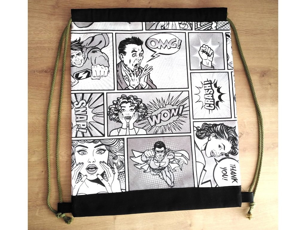 Stahovací vak na záda KOMIKS ČERNOBÍLÝ