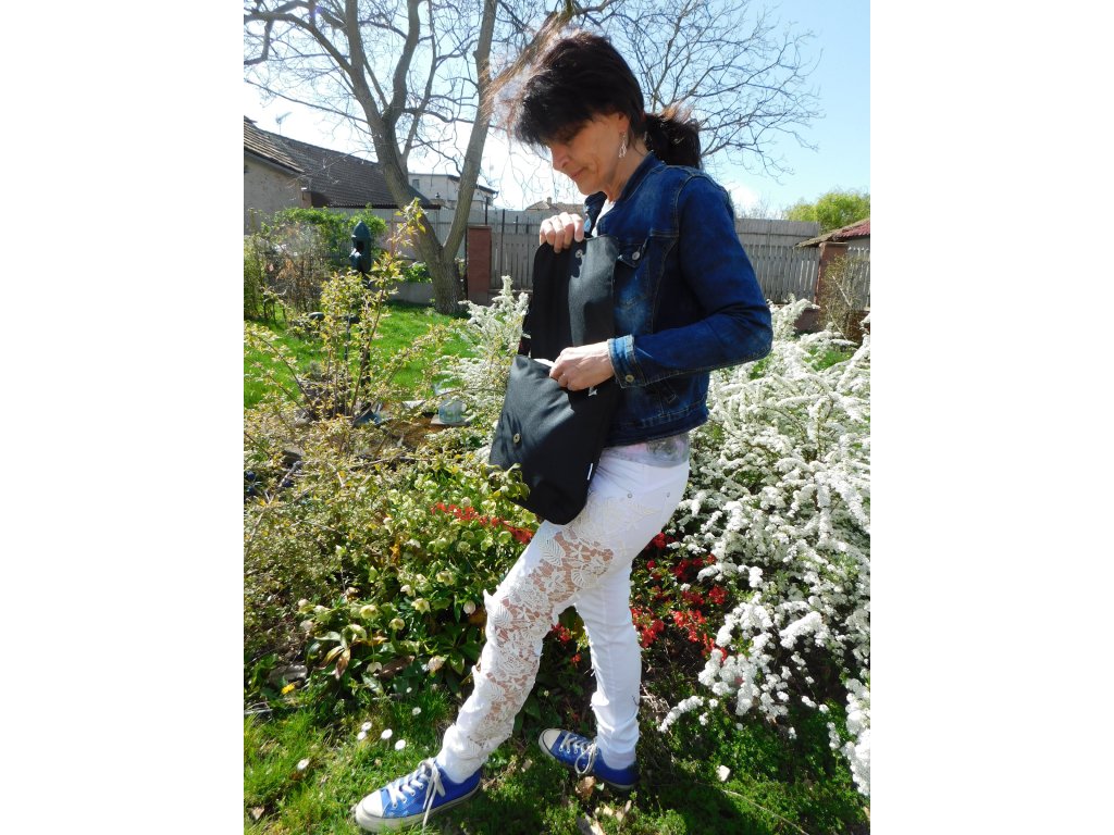 Zadní a přední část tašky je ušita z černé kočárkoviny.
