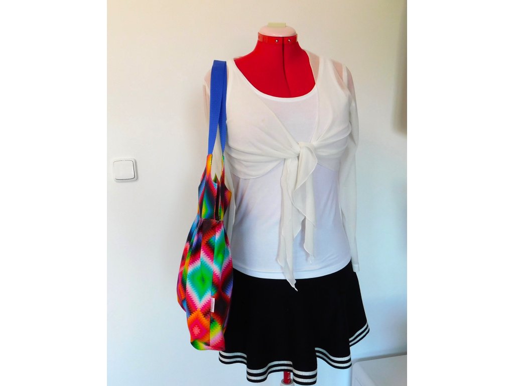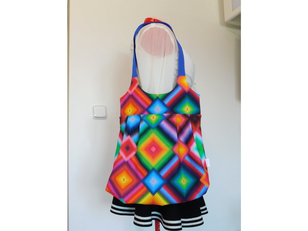 Taška je nabíraná do sedla, které je vyztužené. Na každé straně jsou sámky, díky nim je taška prostorná a praktická, vejde se do ní spoustu věcí.