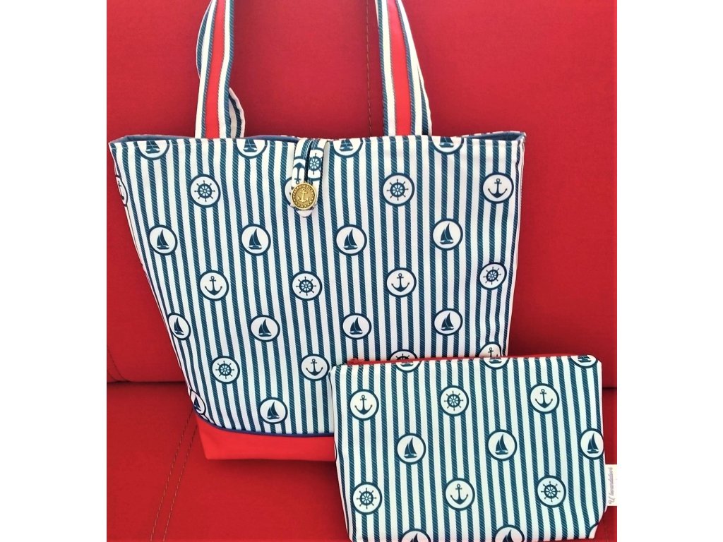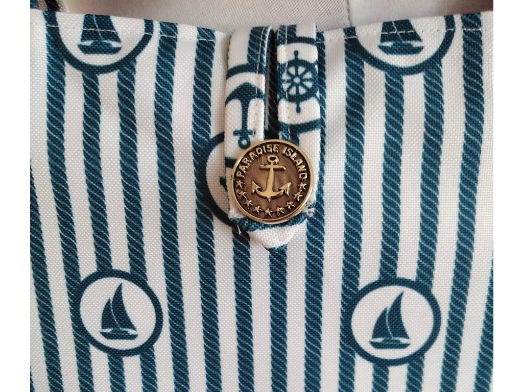 Vyztužená, prostorná a částečně nepromokavá taška v námořnickém stylu se zapínáním se stylovým knoflíkem.